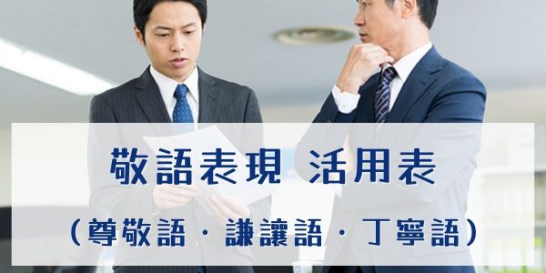 敬語表現(尊敬語・謙譲語・丁寧語)活用表 和首初次見面的人說話時,以及在商業場面,都會使用敬語。初対面の人と話す時やビジネスシーンでは、敬語が使われます。 為了能變得正確使用,這個 blog 裡面會介紹各種動詞的敬語表現和文型。此外,為了方便使用,也用列表整合了。正しく使えるように、本ブログでは、様々な動詞の敬語表現や型を紹介します。また、使い易い様にリストにもまとめてみました。 1)敬語的種類 敬語の種類 敬語主要分為 ①尊敬語 ②謙譲語 ③丁寧語 3種類。敬語は主に ①尊敬語 ②謙譲語 ③丁寧語 の3種類に分けられます。 ① 【尊敬語】是對說話對象的行為使用。以「抬舉」說話對象來表現敬意。尊敬語は、相手の行為に対して使います。相手を持ち上げることで敬いを表現します。 例)先生は教室にいらっしゃいます。老師在教室裡。 ② 【謙讓語】是對自己的行為使用。面對說話對象,以自己的謙遜來表現敬意。謙譲語は、自分の行為に対して使います。相手に対して自分がへりくだることで敬意を表します。 例)私(わたくし)は、明日先生のご自宅へ伺います(うかがいます)。我明日去拜訪老師的住所。 ③ 【丁寧語】是使用禮貌(丁寧)的措辭來對對方表示敬意。既不「抬舉」說話對象(尊敬語),也不「降低」自己(謙讓語)。【丁寧語】は、相手に対する言い回しを丁寧にすることで敬意を表します。相手を立てたり(尊敬語)、自分を下げたり(謙譲語)はしません。 使用「~ます」「~です」。「~ます」「~です」を用います。 例)あなたは、お酒を飲みますか?你喝酒嗎? わたしも、お酒を飲みます。我也喝酒。 2)主要動詞的敬語表 主な動詞の敬語表 中文 尊敬語 丁寧語 謙譲語 去/來 いらっしゃいます .行きます(去).来ます (來) 参ります 在 いらっしゃいます います おります 去(拜訪) × ・(~のうちへ)行きます(去~的家)・聞きます 伺います 吃/喝 召し上がります ・食べます(吃)・飲みます(喝) いただきます (我)獲得 × もらいます いただきます (他人)給我 くださいます くれます × 做 なさいます します いたします 說話 おっしゃいます 言います … Continue reading 敬語表現(尊敬語・謙讓語・丁寧語)活用表